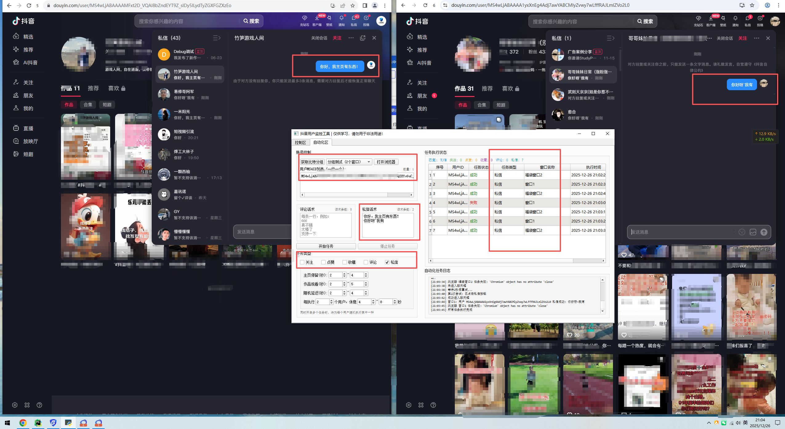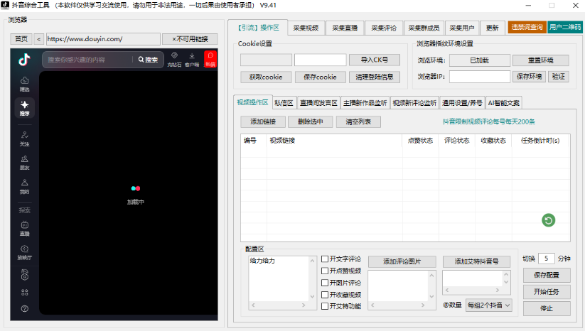 抖音综合引流工具-集采集关注评论私信点赞、赠直播采集和私信工具